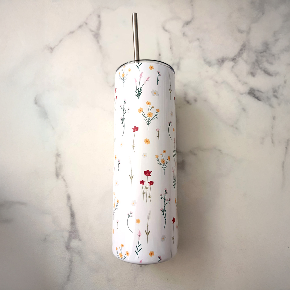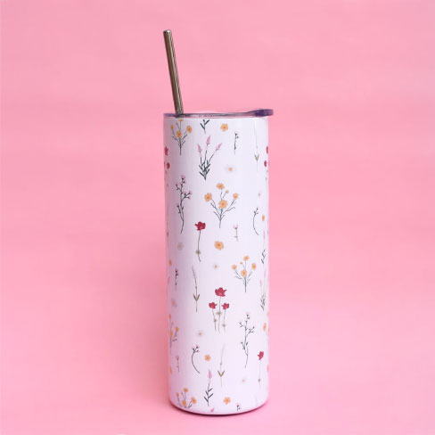 כוס תרמית עם קש עם הדפס פרחים – 600 מ"ל