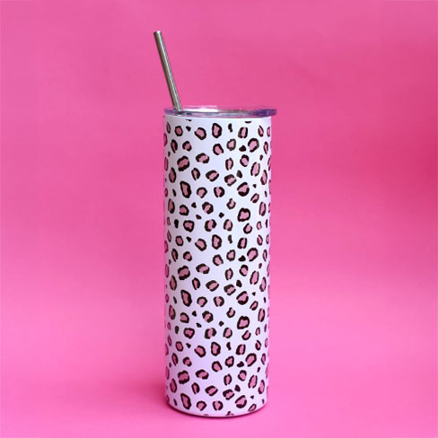 כוס תרמית עם קש בהדפס מנומר – 600 מ"ל