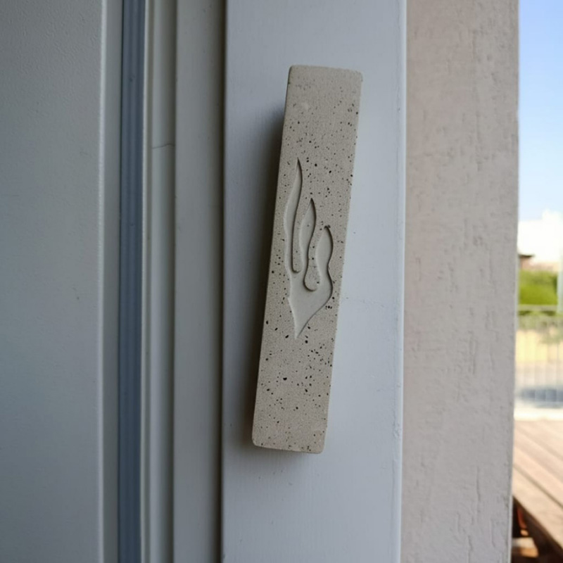 מזוזה ייחודית בעבודת יד מלאה, המשלבת חמימות, אבן טבעית ויופי עדין לכניסה לבית.