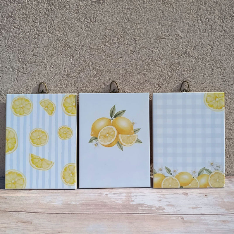 שלישיית תמונות לימונים על אריחי קרמיקה
